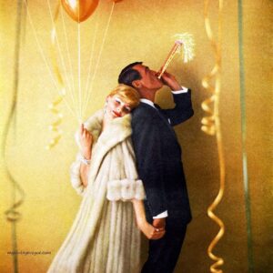 These two make me smile. They are clearly at a real, old-fashioned New Year’s Eve party—dressed to the nines, party makers in hand. I love the idea of it far more than the…